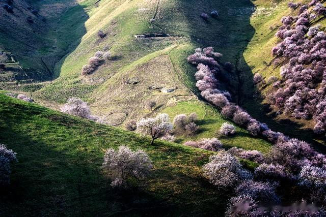 伊犁的春天,是杏花的海洋。野杏花盛开,粉色的花海与草原、雪山构成一幅绝美的画卷,体验塞外江南的独特风情。