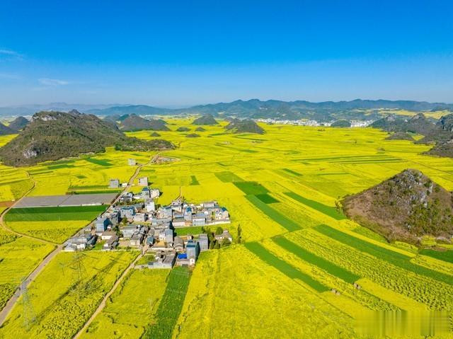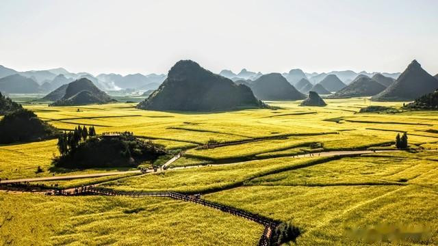 罗平的春天,是油菜花的盛宴。80万亩的油菜花海,在阳光下闪耀着金色的光芒,登上金鸡峰丛,放眼望去,一片金色的海洋,令人心旷神怡。